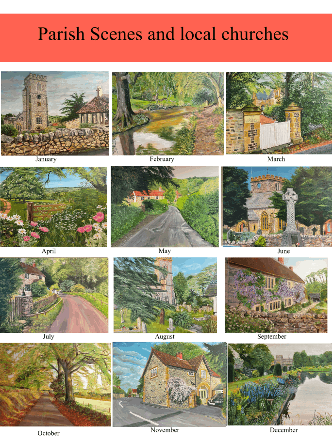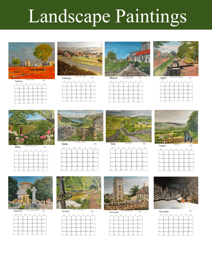 In this calendar we travel from a Scottish fishing village, down to East Devon, passing through the Lake District, Whitby and Stratford on Avon en route. We also head for America and Australia and even Malta for brief visits.